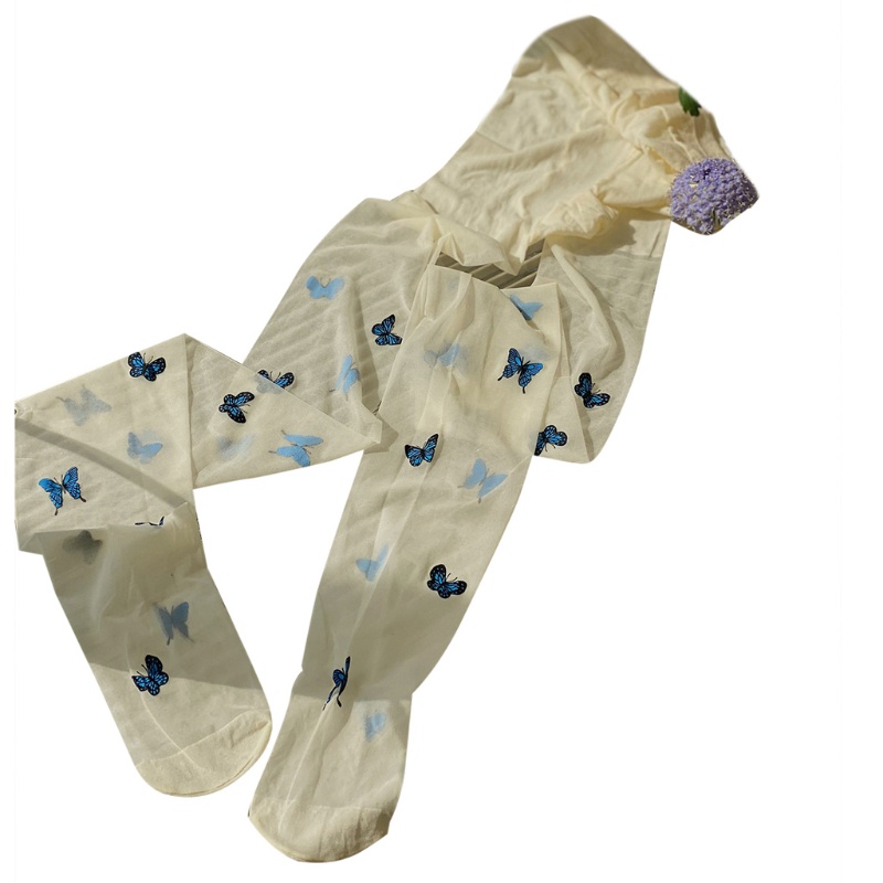 Quần tất siêu mỏng in họa tiết bướm xanh dương phong cách lolita dành cho nữ