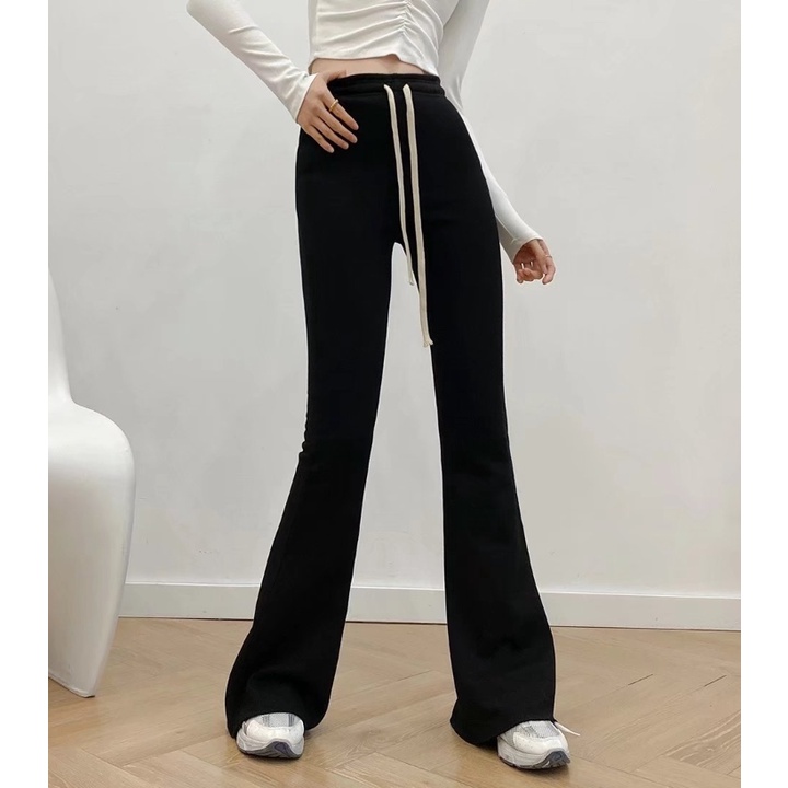 Quần Thể Thao Ống Loe Lưng Cao Co Giãn Chất Nhung Dày Dặn Phong Cách Âu Mỹ Thời Trang Thu Đông Cho Nữ