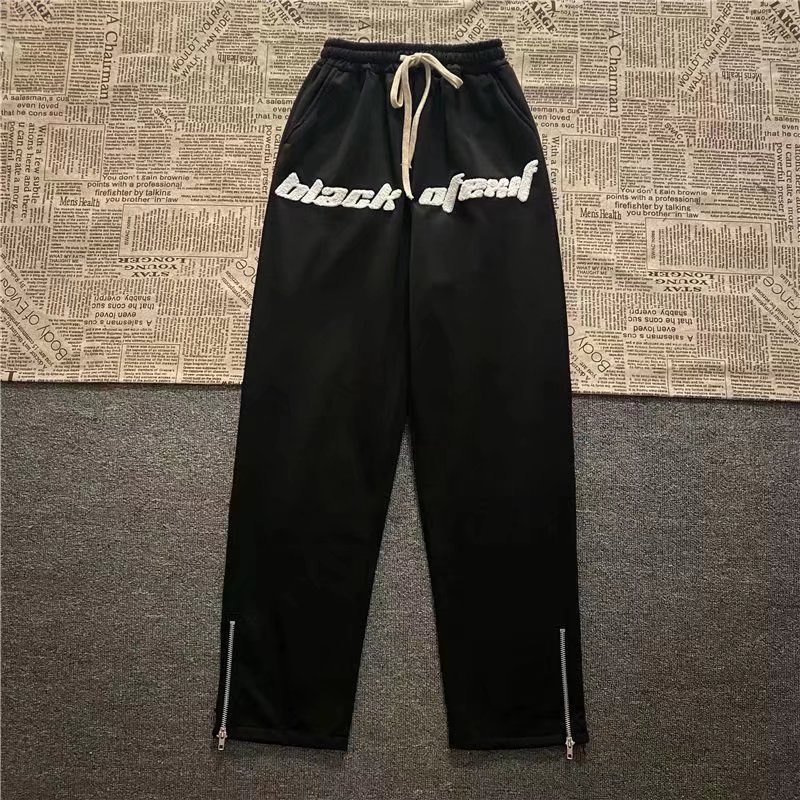 Quần Thể Thao Ống Rộng Xẻ Tà Thêu Họa Tiết Phong Cách Hip Hop Đường Phố Mỹ Thời Trang Xuân Thu Cho Nam