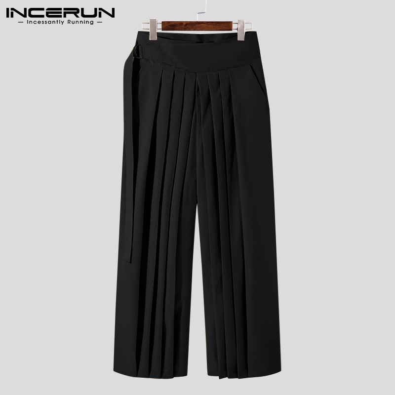 Quần xếp ly INCERUN ống rộng lưng cao màu trơn trẻ trung cho nam