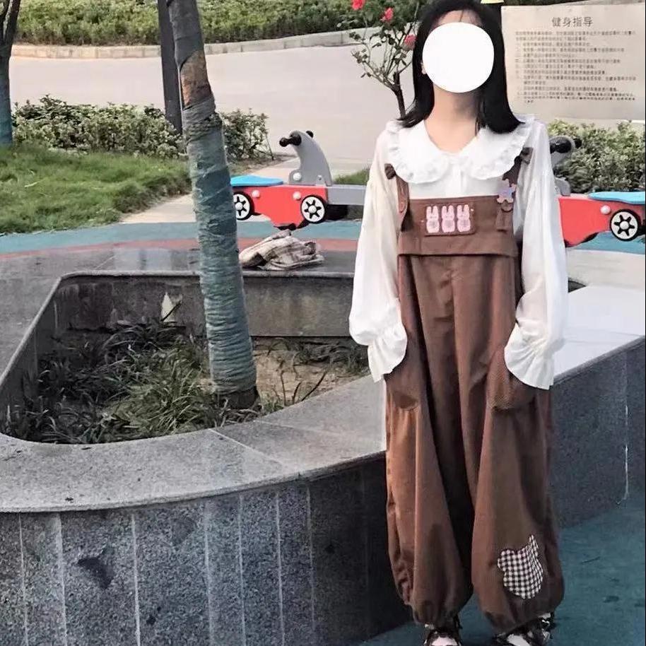 Quần Yếm Vải Nhung Mềm Dáng Rộng Phong Cách Retro Nhật Hàn Thời Trang Xuân Thu Cho Nữ