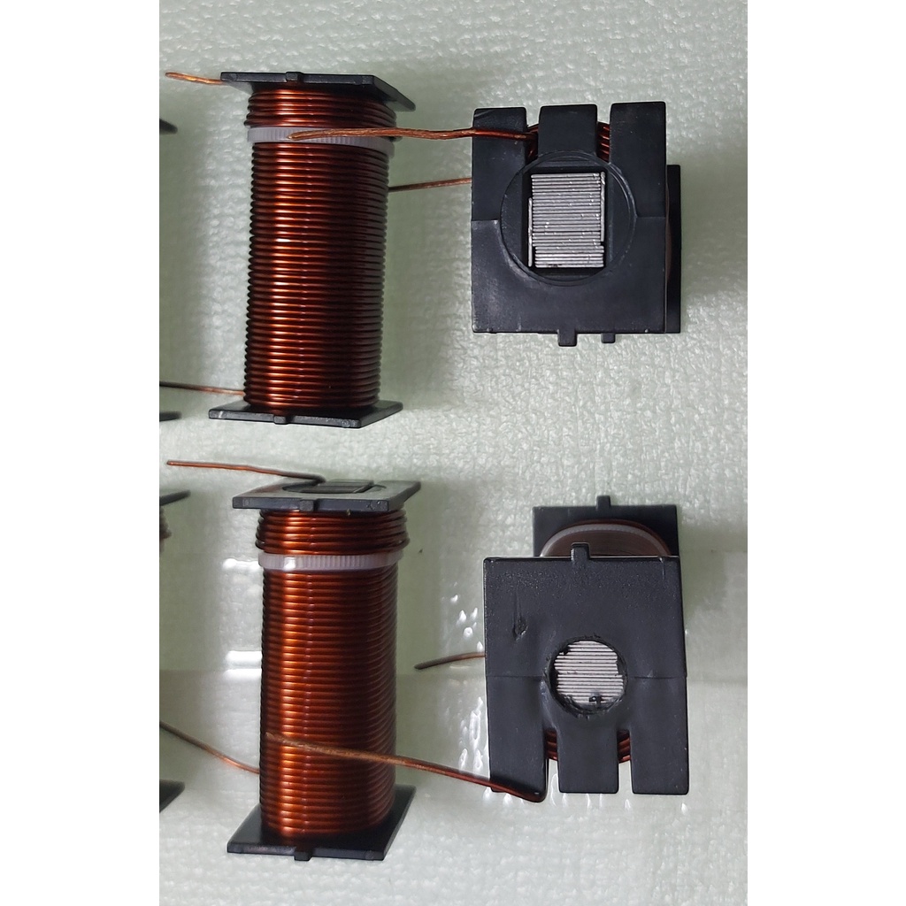 Quận cảm( L _xeo đồng ) cho loa bass ,khi cản bằng quận cảm gọi là kắt tần số cho loa bass ra dải trầm sâu hơn không bị trộn lẫn tiếng treble vào loa bass TRỊ SỐ 1.40 MH ( MILIHENRY) quận cảm làm bằng giây đồng tinh khiết 1,1 li có lõi sắt ,dây tráng men đỏ tươi có th