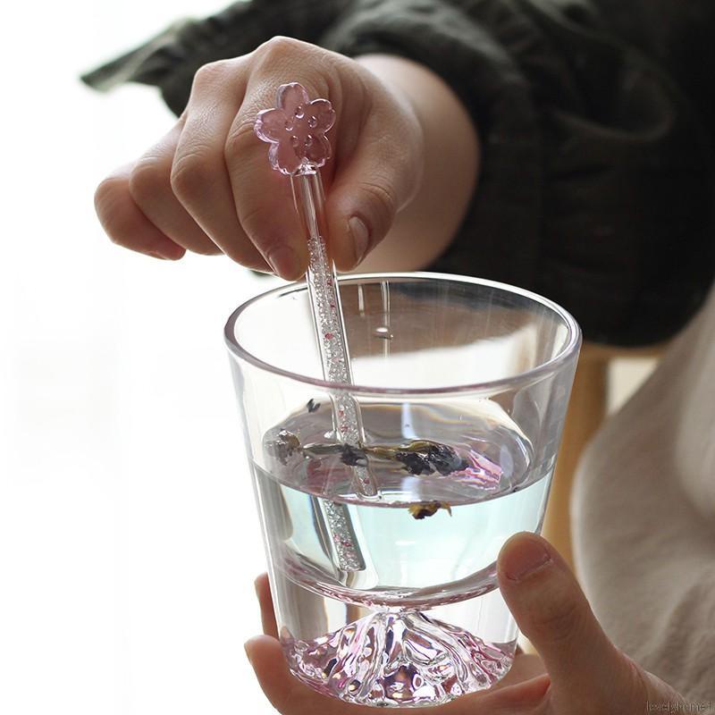 Que khuấy đồ uống bằng thủy tinh họa tiết hoa anh đào