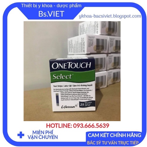 Que thử đường huyết Lifescan OneTouch Select 25- hộp 25 que đo chính xác kết quả, hữu ích với người cao tuổi- Bsviet