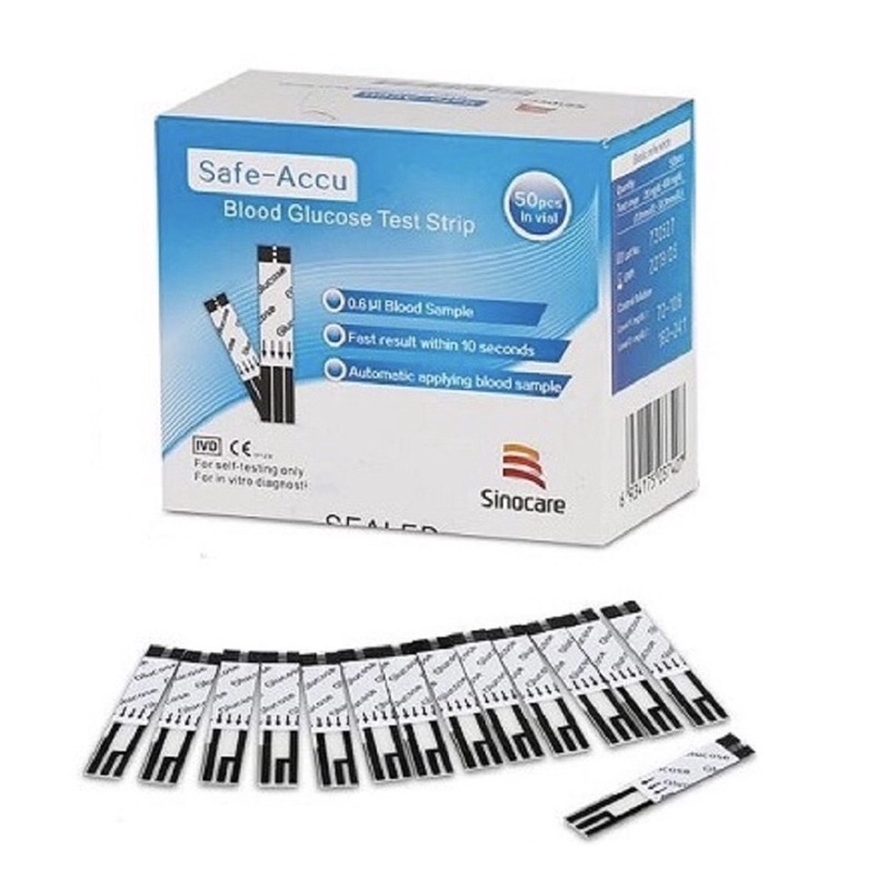 Hộp 50 que thử đường huyết, tiểu đường Sinocare Safe-Accu chính hãng + 50 Kim chích máu