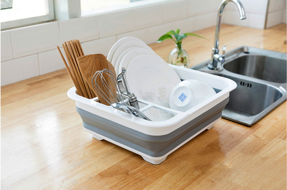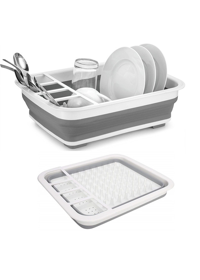 Rổ úp bát đĩa silicon gấp gọn - Ghi Trắng...