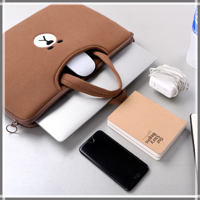 ⭐️ READY STOCK⭐️Túi chống sốc laptop Macbook gấu Brown Hàn Quốc có quai cầm 11 12 13.3 14 15 15.6inch