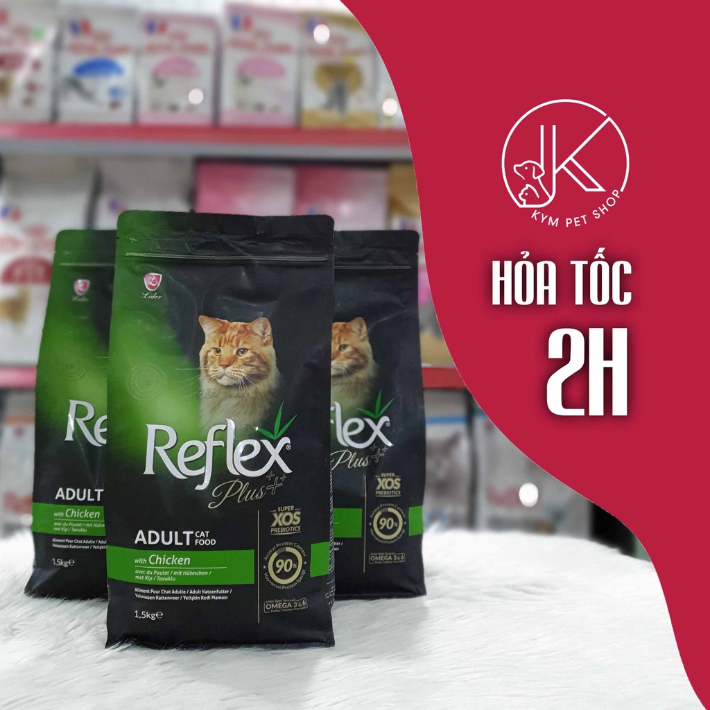 REFLEX plus – Thức ăn hạt khô cho mèo siêu cao cấp Thổ Nhĩ Kỳ Trọng lượng: 1.5kg – Thức ăn khô cho mèo siêu cao cấp với công thức cân bằng và hoàn chỉnh dành cho mèo con và mèo trưởng thành – Dành cho tất cả giống mèo @ Công thức đặc biệt cao cấp dành cho các giống mèo con và mèo trưởng thành @ Sự cân bằng của Omega 3 & Omega 6 đã đạt được bằng cách sử dụng hạt lanh giúp lông bóng mượt. @ Chiết xuất cây Yucca giúp tăng khả năng hấp thụ dinh dưỡng, kiểm soát mùi. Men bia giúp hệ thống miễn dịch được tăng cường & năng suất vật nuôi được cải thiện. @ Xylo-oligosaccharides (XOS) giúp giảm các vấn đề như chất béo không mong muốn và đường huyết ở mèo với giá trị Calo xấp xỉ bằng không. Cải thiện quá trình tiêu hóa và chuyển hóa thức ăn bằng cách cải thiện hệ vi khuẩn đường ruột. Tác dụng chống oxy hóa tự nhiên. @ Bổ sung Vitamin A, D3, E, C và khoáng chất.