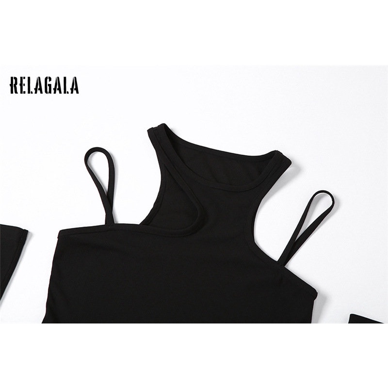 Relagala Bộ Áo Liền Quần Không Tay Ôm Dáng Màu Trơn Thời Trang Đường Phố Gợi Cảm Cho Nữ