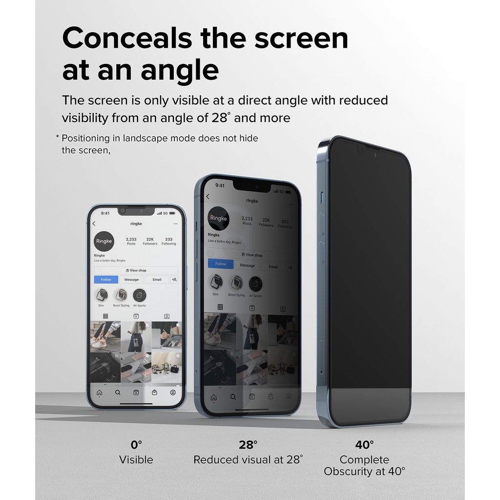 Thời gian giao hàng dự kiến cho sản phẩm này là từ 7-9 ngày Kính cường lực bảo vệ màn hình điện thoại chống nhìn trộm, bảo vệ toàn màn hình với chức năng cản tầm nhìn đảm bảo sự riêng tư. Kính cường lực phân cực che khả năng hiển thị của màn hình từ một góc độ. Giảm tầm nhìn ở 28° và che khuất hoàn toàn ở 40°. Lớp phủ oleophobic chống bám dấu vân tay và vết ố cho trải nghiệm người dùng tốt nhất. Kính cường lực có độ cứng 9H bảo vệ màn hình cảm ứng khỏi trầy xước và va đập. Thiết kế thân thiện với ốp điện thoại. Hoàn thiện khả năng bảo vệ của bạn bằng cách ghép nối với một chiếc ốp điện thoại RINGKE để đảm bảo vừa vặn. Được giao từ trụ sở RINGKE - Hàn Quốc. Gói hàng bao gồm: Kính cường lực bảo vệ màn hình điện thoại, Vải lau, Tấm cạo, Miếng dán lấy bụi, Vải lau cồn, Hướng dẫn lắp
