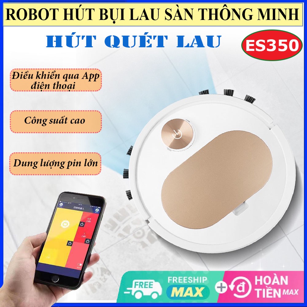 Robot Hút Bụi Lau Nhà ES350, Máy Hút Bụi. Bản nâng cấp, lực hút mạnh, cảm biến thông minh, điều khiển qua app. BH 12 T