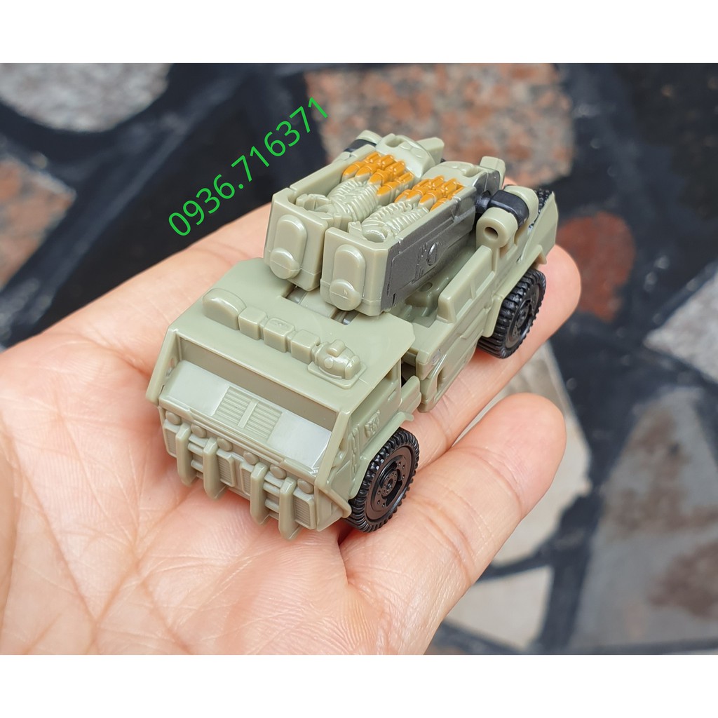 Được sản xuất bởi thương hiệu đồ chơi Hasro (Mỹ) Sản xuất tại Việt Nam Năm sản xuất: 2019 Kích thước : Robot cao 6.5cm, biến hình xe quân sự màu xanh rêu dài 6cm Chất liệu: Sản phẩm được làm bằng nhựa dày, đẹp và an toàn cho trẻ. Các khớp rất chắc chắn, dày dặn, khít
