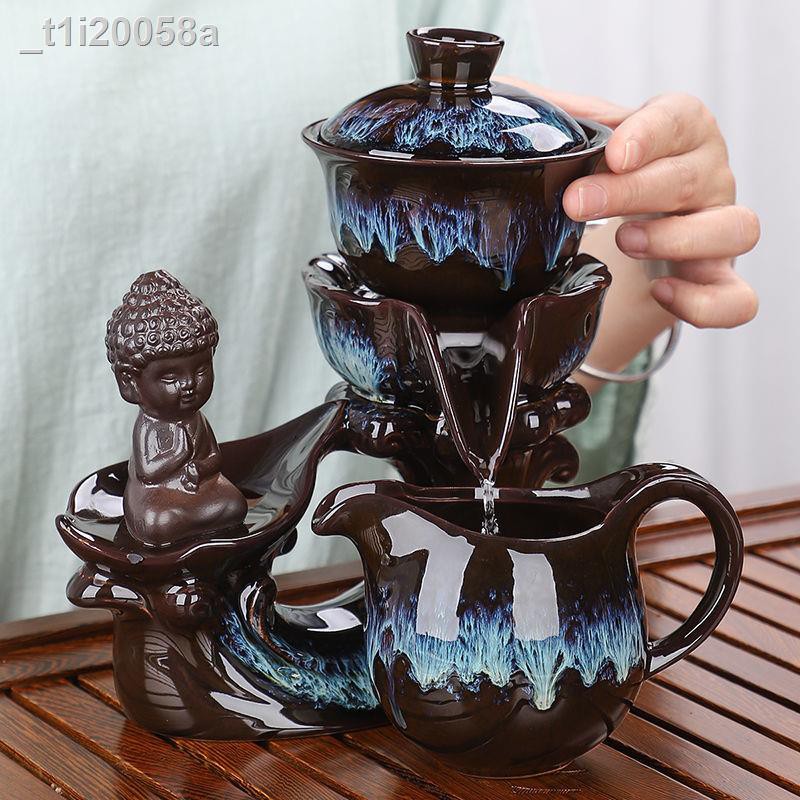 ☼ ✤ Ronghao Kungfu Tea Set Máy pha trà lười hoàn toàn tự động Gốm sứ tráng men vàng Bộ ấm trà Bộ ấm trà đơn giản