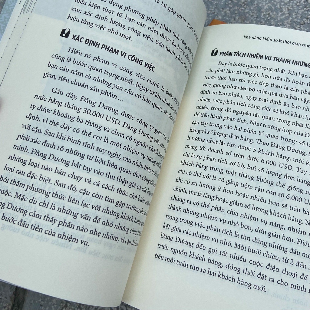 Sách - 1 ngày bằng 48 giờ - Sổ tay quản lý thời gian hiệu quả Bạn chưa đi làm, hoặc vừa mới chân ướt chân ráo bước vào chốn công sở, đã bao giờ bạn gặp phải tình huống như thế này: Khi cấp trên (hoặc thầy cô giáo) giao cho bạn một việc nào đó, ngay lập tức bạn ghi ghi chép chép rồi lao vào thực hiện. Chỉ tập trung làm cách nào để mau chóng hoàn thành nên bạn không nghĩ đến việc xác nhận lại với cấp trên (hoặc thầy cô) về mục tiêu chính của nhiệm vụ. Trong suốt quá trình thực hiện, bạn ít khi trao đổi với người khác, cũng không dành thời gian suy nghĩ, phân tích kĩ xem làm thế nào cho hiệu quả. Kết quả là khó khăn lắm mới kịp hoàn thành nhiệm vụ trước thời hạn, nhưng trái với mong đợi của bạn, những gì bạn nhận được rất có thể là thái độ không hài lòng của cấp trên (hoặc thầy cô). Rất ít người có thể hoàn thành nhiệm vụ một cách trọn vẹn ngay lần đầu tiên. Rốt cuộc vấn đề nằm ở đâu? Do bạn quản lí thời gian chưa tốt, hay phương pháp thực hiện chưa đúng?... Trong cuốn sách này, tiến sĩ Bichines đưa ra “ba bước giải quyết vấn đề” đơn giản mà hiệu quả: 1, Nêu vấn đề (What) 2, Phân tích vấn đề (Why) 3, Giải quyết vấn đề (How) Phương pháp này còn có tác dụng giúp bạn rèn luyện tư duy logic. The đó, sau khi nhận nhiệm vụ, việc đầu tiên bạn cần làm không phải là bắt tay ngay vào việc mà dành chút thời gian để phân tích vấn đề, cũng như hiểu rõ những gì mình cần làm và phải làm ra sao. Nếu biết vấn dụng thành thạo ba bước giải quyết vấn đề trên, tin rằng mọi khó khăn bạn gặp phải đều có thể giải quyết dễ dàng. --------- Mã sản phẩm: 8936067604184 Tác giả : Instant Research Institute Dịch giả :Minh Minh NXB: NXB Thanh Niên Kích thước : 14.5x20.5 cm Năm xuất bản : 2021 Số trang : 208 -------- Aacbooks cam kết: - Sách đảm bảo chuẩn NXB, mới 100%, được đóng bọc cẩn thận, chống va đập khi vận chuyển! - Giao hàng nhanh chóng, sách đúng với hình ảnh và mô tả! - Hỗ trợ đổi trả hàng trong 7 ngày khi khách hàng gặp sự cố về sản phẩm - Hỗ trợ giao hàng tại nhà và hỗ trợ freeship theo chính sách của shopee #sách_kĩ_năng #kĩ_năng_công_sở #quản_lí_thời_gian