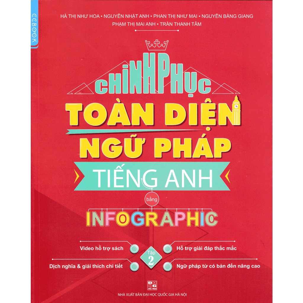 Sách - Chinh Phục Toàn Diện Ngữ Pháp Tiếng Anh Bằng Infographic Tập 2 Chinh phục toàn diện ngữ pháp tiếng Anh bằng infographic tập 2 bao gồm 10 chuyên đề: cụm động từ; thể bị động; liên từ; sự hòa hợp chủ ngữ & động từ; giả định thức; câu gián tiếp; mệnh đề; đảo n