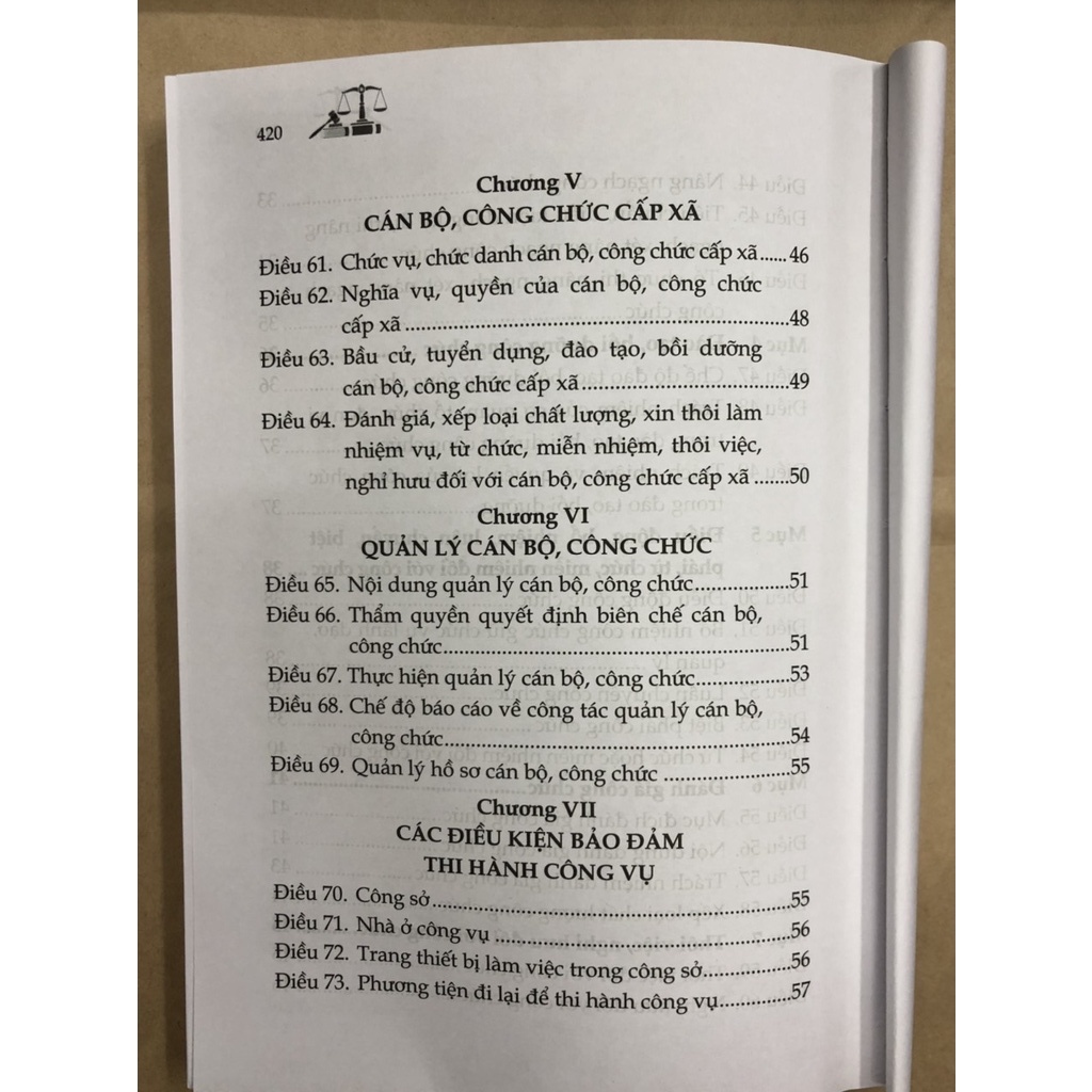 SÁCH LUẬT CÁN BỘ, CÔNG CHỨC VÀ VĂN BẢN HƯỚNG DẪN THI HÀNH Tác giả: Nhiều tác giả Nhà xuất bản: NXB Lao động Nhà phát hành: Dân Hiền Năm xuất bản: 2022 Bìa sách: Bìa mềm Khổ sách: 16 x 24 Số trang: 424 Luật cán bộ, công chức số 22/2008?QH12 ngày 13 tháng 11 năm 2008 của Quốc hội, có hiệu lực kể từ ngày 01 tháng 01 năm 2010, được sửa đổi, bổ sung bởi: Luật số 52/2019/QH14 ngày 25 tháng 11 năm 2019 của Quốc hội sửa đổi, bổ sung một số điều của Luật cán bộ, công chức và Viên chức, có hiệu lực kể từ ngày 01 tháng 07 năm 2020 Căn cứ Hiến pháp nước Cộng hòa Xã hội Chủ nghĩa Việt Nam năm 1992 đã được sửa đổi, bổ sung một số điều theo Nghị quyết số 51/2001/QH10 Quốc hội ban hành Luật cán bộ, công chức Luật này quy định về cán bộ, công chức, bầu cử, tuyển dụng, sử dụng, quản lý cán bộ, công chức, nghĩa vụ, quyền của cán bộ, công chức và điều kiện đảm bảo thi hành công vụ Luật gồm 10 chương: Chương 1: Những quy định chung Chương 2: Nghĩa vụ, quyền của cán bộ, công chức Chương 3: Cán bộ ở trung ương, cấp tỉnh, cấp huyện Chương 4: Công chức ở trung ương, cấp tỉnh, cấp huyện Chương 5: Cán bộ, công chức cấp xã Chương 6: Quản lý cán bộ, công chức Chương 7: Các điều kiện đảm bảo thi hành công vụ Chương 8: Thanh tra công vụ Chương 9: Khen thưởng và xử lý vi phạm Chương 10: Điều khoản thi hành Nhà sách Pháp luật trân trọng giới thiệu cuốn sach tới bạn đọc!