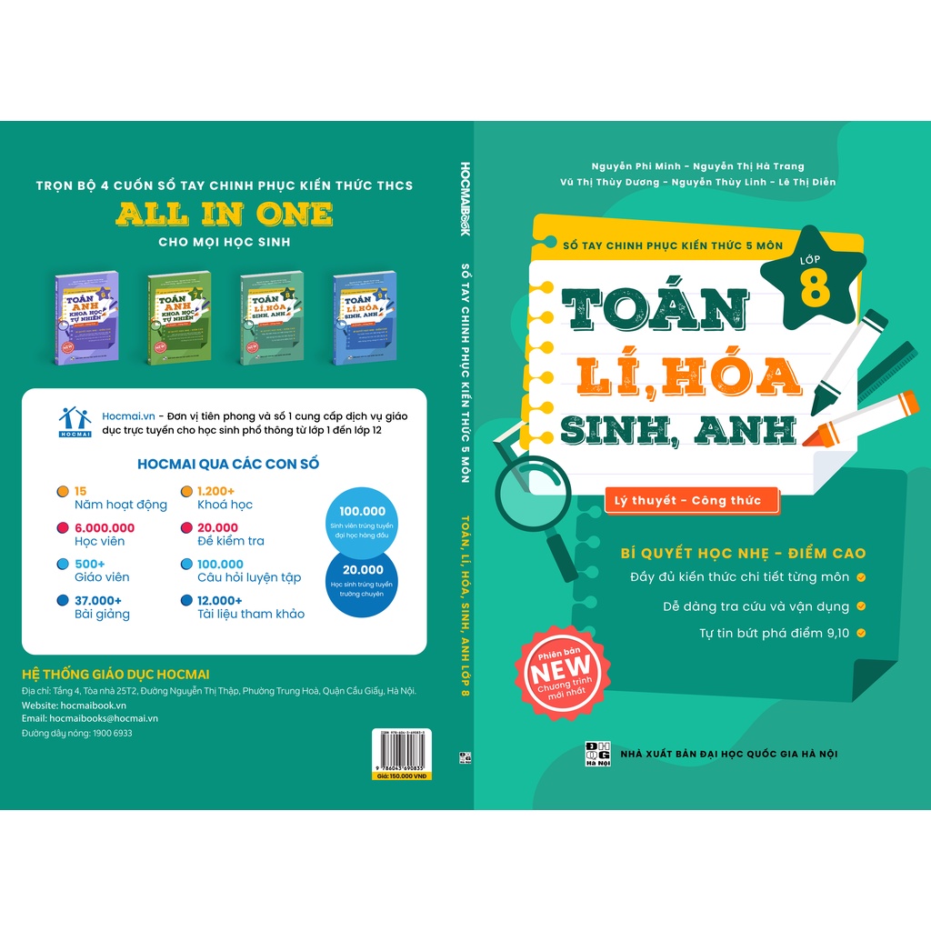 Sách Sổ Tay Chinh Phục Kiến Thức 5 môn TOÁN - LÍ - HÓA - SINH - ANH LỚP 9