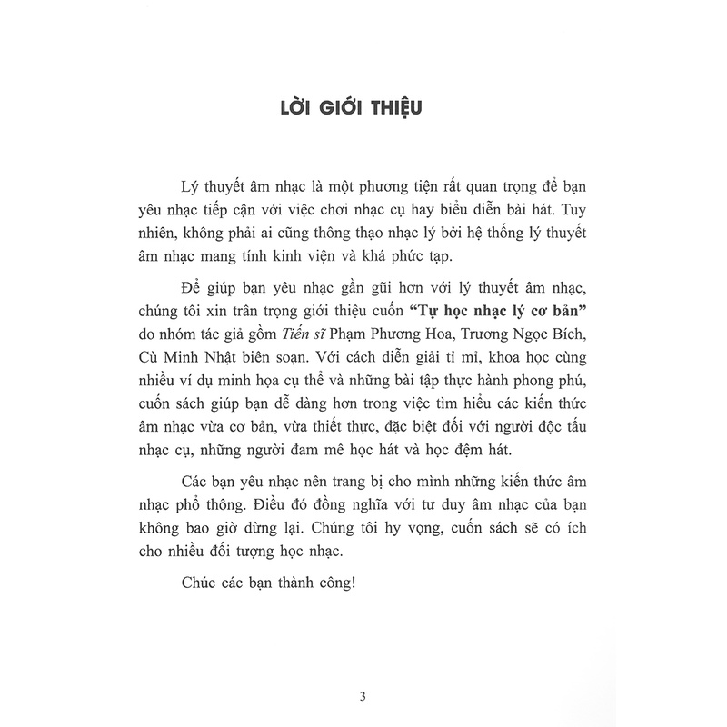 Tự Học Nhạc Lý Cơ Bản Nắm được rõ vai trò của lí thuyết âm nhạc đối với người yêu thích âm nhạc và những người mong muốn có một kiến thức cơ bản nhất của nhạc lí. Cuốn sách sẽ giúp bạn không còn phải thấy khó khăn hay thắc mắc về những mặt như: khuông nhạc, nốt nhạc,