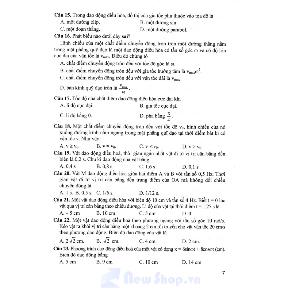 Trắc Nghiệm Theo Chuyên Đề Vật Lí 12 Phạm Đức Cương Từ năm 2017, môn Vật Lí được ghép vào tổ hợp Khoa Học Tự Nhiên. Để đánh giá lại kết quả học tập của mình trước kì thi Tốt nghiệp THPT Quốc Gia chính thức, các giáo viên trường THCS và THPT Nguyễn Khuyến đã biên soạn cuốn sách: Trắc Nghiệm Theo Chuyên Đề Vật Lí 12. Sách được biên soạn hơn 1670 câu hỏi trắc nghiệm trải đều kiến thức chương trình Vật Lí 12, từ dễ đến khó đáp ứng các yêu cầu của từng đối tượng học sinh mong muốn. 40 chuyên đề tổng hợp 7 chương học bám sát chương trình học từ cơ bản đến nâng cao giúp học sinh ôn tập tốt cho kì thi THPT Quốc Gia, chinh phục các câu hỏi khó, đạt được số điểm tối đa. Nhà sách Newshop hy vọng cuốn sách luyện thi này sẽ là tài liệu cần thiết giúp các em học sinh và giáo viên tham khảo và tự rèn luyện nâng cao kiến thức và công phá mọi đề thi một cách hiệu quả. #newshop --------------------------------------------------------------------------- Công ty phát hành: Nhà Sách Hồng Ân Kích Thước: 17 x 24 Nhà Xuất bản: Nhà Xuất Bản Đại Học Quốc Gia Hà Nội Barcode: 8935092808895 Tác giả: Thân Thanh Sang, Bùi Trần Đức Anh Thái, Lê Thế Nhiên, Phạm Đức Cường Số trang: 584 Năm xuất bản: 2022 Bìa: Mềm Mục tiêu của Newshop.vn là mang đến cho cộng đồng những sản phẩm, dịch vụ chất lượng hàng đầu bằng chính sự trân trọng, tình yêu và trách nhiệm cao của mình đối với môi trường và xã hội. Thông qua mỗi đơn hàng được đặt thành công tại Newshop.vn, chúng tôi trân trọng và vận dụng quy trình đóng gói, vận chuyển chuyên nghiệp nhất cho từng đơn hàng đến mỗi quý khách hàng của chúng tôi. Đảm bảo khi nhận hàng, quý khách nhất định sẽ hài lòng với dịch vụ của chúng tôi!