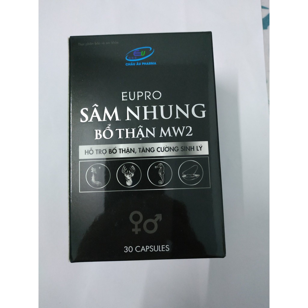 SÂM NHUNG BỔ THẬN MW2 HỖ TRỢ BỔ THẬN, TĂNG CƯỜNG SINH LÝ THÀNH PHẦN: Bá bệnh......................................... 600mg Dâm dương hoắc.......................... 400mg Nhục thung dung.......................... 300mg Ba kích.......................................... 300mg Bạch tật lê..................................... 300mg Cầu tích......................................... 300mg Nhâm sâm..................................... 120mg Thỏ ty tử....................................... 100mg Cầu kỷ tử...................................... 100mg Đương quy.................................... 100mg Liên nhục...................................... 100mg Đỗ trọng........................................ 100mg Hà thủ ô........................................ 100mg Kẽm gluconate................................ 40mg L-Arginine....................................... 30mg Cá ngựa........................................... 20mg Bột hàu biển.................................... 20mg Nhung hươu.................................... 20mg Collagen.......................................... 10mg Phụ liệu: Vỏ nang – Gelatin, Chất chống đông vón – Talc, Magnesium CÔNG DỤNG: - Dùng cho cả nam và nữ trong các trường hợp thận hư, thận yếu, tiểu đêm, tiểu tiện nhiều lần, chân tay tê mỏi, đau lưng, mỏi gối, táo bón, nước tiểu vàng, tóc bạc sớm, tiểu đường, sinh lý yếu. - Hỗ trợ bổ thận, tăng cường chức năng sinh lý, hạn chế quá trình mãn dục. - Giúp bổ thận, tráng dương, tăng cường sinh lực, tăng tiết hormone giới tính nam testosterone - Phục hồi và tăng cường sức khỏe sinh lý nam giới, tăng số lượng và chất lượng tinh trùng, cải thiện và làm chậm quá trình mãn dục, lãnh cảm tình dục, bồi bổ giúp cơ thể khỏe mạnh, sinh lý sung mãn. ĐỐI TƯỢNG SỬ DỤNG: Nam giới: Liệt dương, di tinh, mộng tinh, xuất tinh sớm, yếu sinh lý, giảm chất lượng cũng như số lượng tinh trùng, giúp cải thiện và làm chậm quá trình mãn dục nam sớm, giảm tiết testosterone Nữ giới: Kinh nguyệt không đều, bốc hỏa, đổ mồ hôi, váng đầu ù tai, đau lưng, mỏi gối, nám da, sạm da, nám má, khí hư, bạch đới, chức năng sinh lý giảm. CÁCH DÙNG: + Trẻ em trên 12 tuổi: uống 1 viên/ngày + Người lớn: uống 1-2 viên/lần x 2 lần/ngày Uống sau ăn 15 phút sáng và tối Nên dùng 1 đợt 3 tháng để có hiệu quả tốt nhất THỜI HẠN SỬ DỤNG: 36 tháng kể từ ngày sản xuất. Ngày sản xuất và hạn sử dụng ghi trên nhãn sản phẩm BẢO QUẢN: Nơi khô ráo, thoáng mát, tránh ánh nắng trực tiếp Sản phẩm này không phải là thuốc, không có tác dụng thay thế thuốc chữa bệnh không sử dụng cho người có mẫn cảm với bất kỳ thành phần nào của sản phẩm. TIÊU CHUẨN: TCCS SỐ 4781/2018/ĐKSP Thương nhân chịu trách nhiệm về chất lượng sản phẩm và phân phối: CÔNG TY TNHH THƯƠNG MẠI DP CHÂU ÂU Địa chỉ: 3/2/16 đường Trung Liệt, Phường Trung Liệt, Q.Đống Đa, TP.Hà Nội Điện thoại: 0246 294 1796