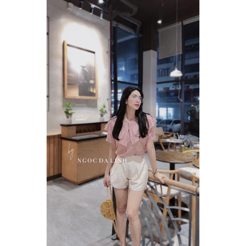 Sét bộ thời trang nữ mặc đi chơi áo toe cổ tròn phối tầng xếp li mix quần đùi chất for bánh bèo
