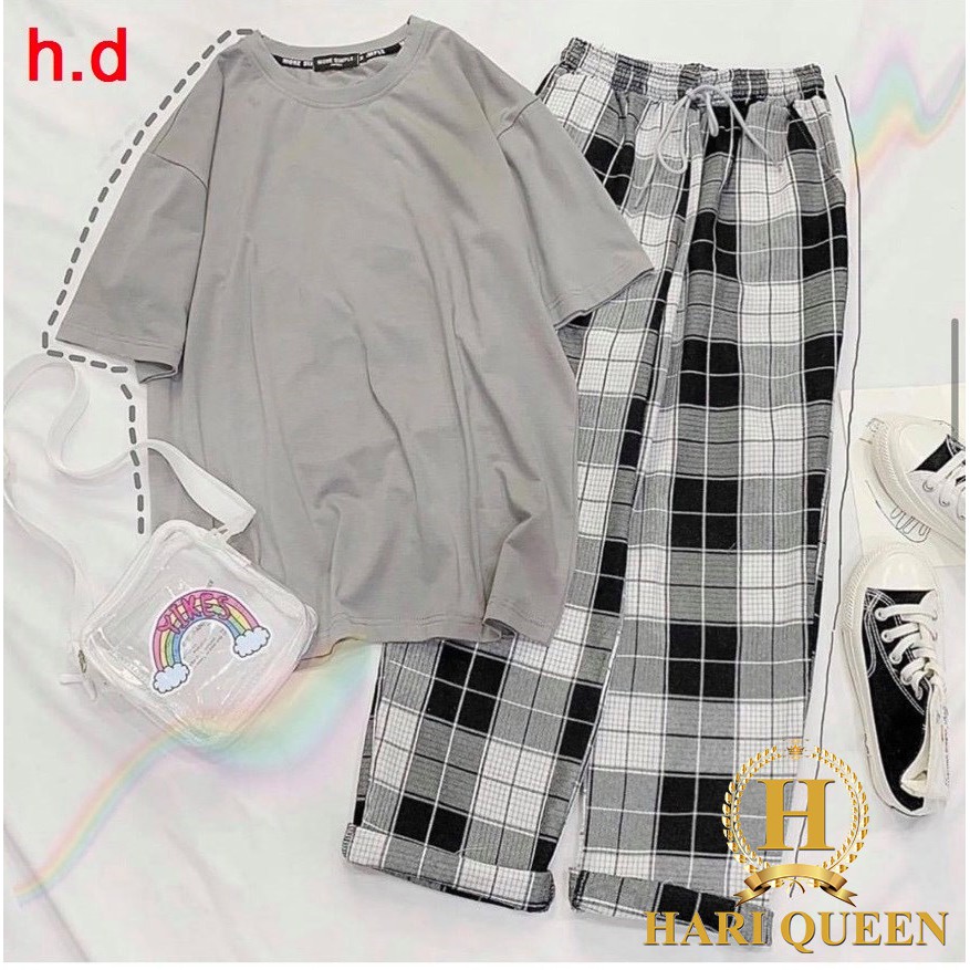 Sét áo thun + quần kẻ ống suông thời trang đẹp rẻ Áo thun nữ ngắn tay thời trang Chất liệu: Cotton tixi Màu sắc: Đen, Ghi, Nâu Sản phẩm nữ Free size dưới 1m62, 40-52kg tùy chiều cao 🎁Thời Trang Nữ Hari Queen – FB: Xưởng May Xuân Hùng 🎀 Chuyên sản xuất và cung cấp “SỈ