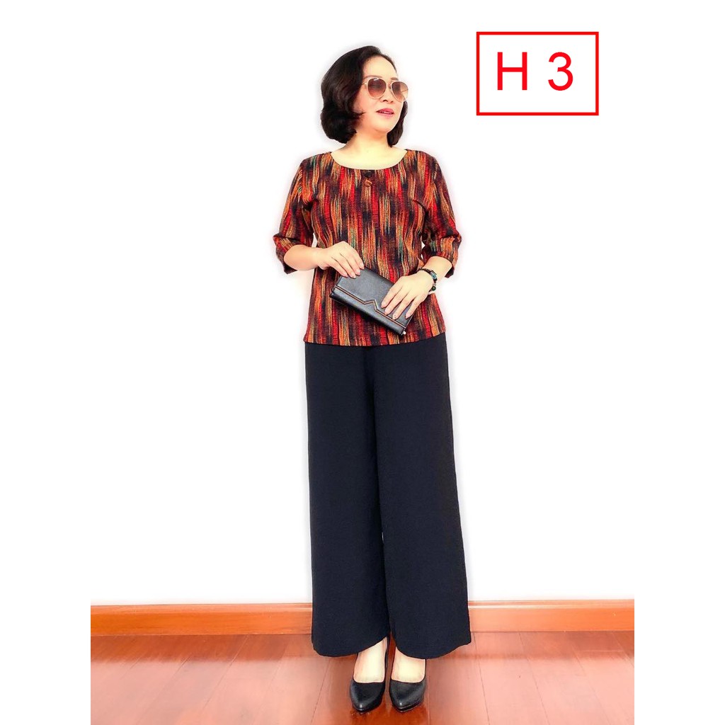 Sét đồ bộ trung niên cho bà, cho mẹ - Bộ trung niên nữ sang trọng - Áo lụa quần suông sang trọng.