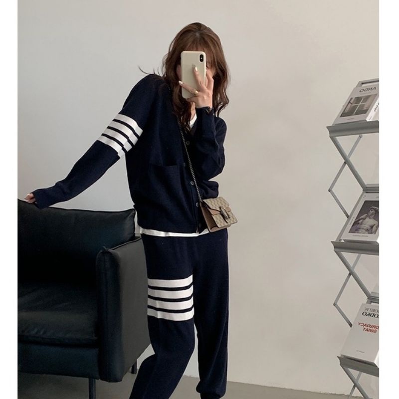 Sét bộ nữ chất len tăm phối sọc thể thao
