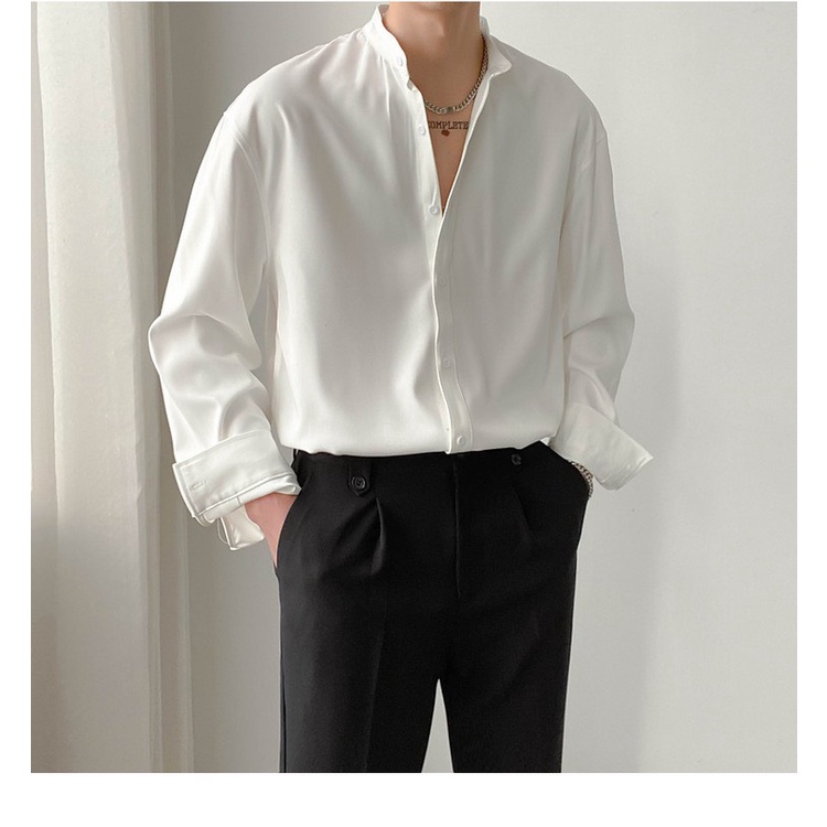 Sơ mi nam công sở Vải Lụa Co Giãn, sơ mi cổ tàu chống nhăn chống xù