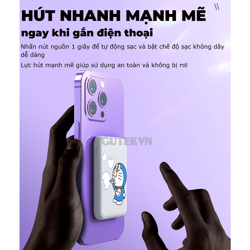 Sạc dự phòng không dây sạc nhanh pin 10000mah mini nhỏ gọn cho từ ip 8/X/11/12/13 – Gutek Mag 3 🔥THÔNG TIN SẢN PHẨM: - Dung lượng: 10000mAh(10W) - Trọng lượng: 180g - Pin: Lithium polymmer - Màu sắc: Trắng + hoạt hình ngẫu nhiên tùy chọn - Đầu ra : + Sạc Không dây: