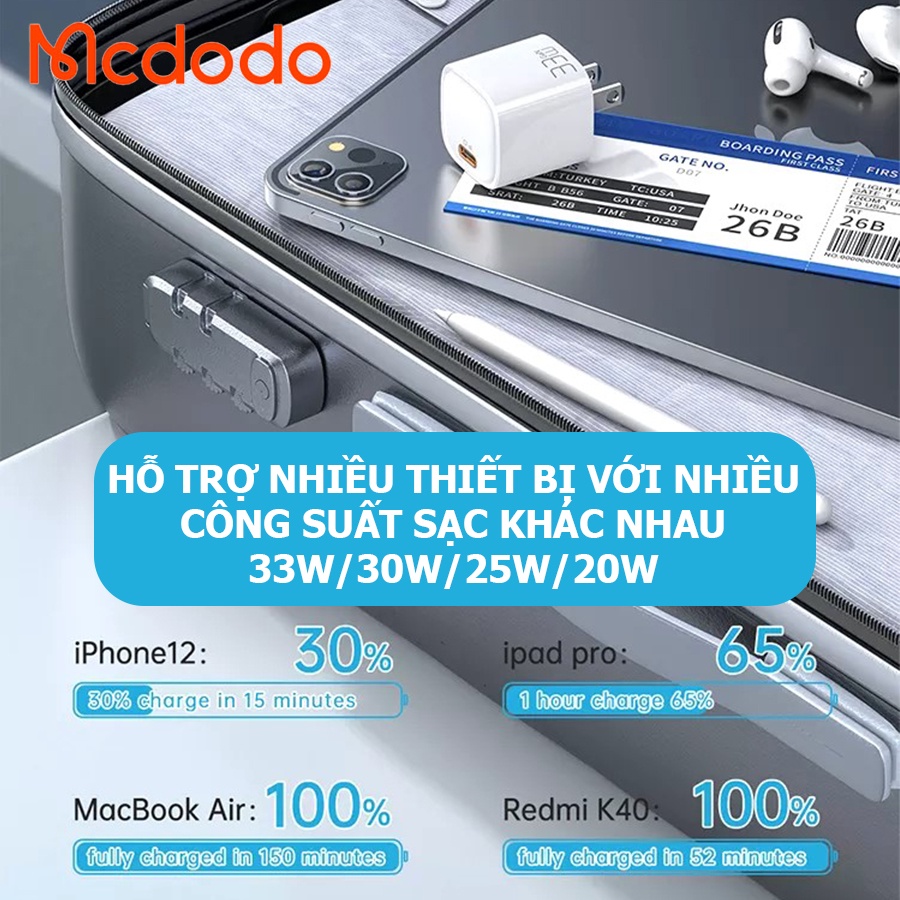 MÔ TẢ SẢN PHẨM Việc sắm cho điện thoại của bạn củ sạc đảm bảo các tiêu chí: an toàn và ổn định là nhu cầu cấp thiết với những ai dùng Smartphone , bỏ qua tất cả các loại hàng g.i.ả trôi nổi trên thị trường hiện nay, tại sao mọi người không dùng phụ kiện của một bên sản xuất phụ kiện thứ 3 , có thể đáp ứng đầy đủ các tiêu chí của sản phẩm chính hãng của với giá thành tốt hơn mà chất lượng tương đương như các sản phẩm chính hãng Chúng tôi xin gửi đến quý khách hàng sản phẩm củ sạc nhanh PD 33W dành cho táo Củ sạc nhanh PD 33W cho táo 14 13 12 11 P..r..o M.a.x, hàng chính hãng MCDODO Mã sản phẩm: CH-648 Có hỗ trợ đầy đủ công nghệ sạc nhanh PD mới nhất Với Công nghệ sạc G.A.N tiên tiến kích thước nhỏ gọn như củ sạc 5W, 32.4*32.4*47.6mm Ng.u.ồ.n điện vào: 100-260v, 50/60Hz, 0.8A Ng.u.ồ.n điện ra: 5V/3A, 9V/3A, 12V/2.5A, 15V/2A, 3.3V-11V/3A, 20V/1.5 Công suất đầu ra : 30W, 18W, 15W, 33W Hỗ trợ công nghệ sạc QC2.0, QC3.0, PD, QC4.0+, PD 3.0, PD 2.0, PPS Nhằm đạt được độ hoàn thiện tối đa, nhà sản xuất đã sử dụng kỹ thuật hàn siêu âm (Ultrasonic welding – UW). Vốn là một kỹ thuật hàn sử dụng năng lượng cơ học của dao động siêu âm làm biến dạng dẻo cục bộ tại bề mặt mối ghép để tạo thành các mối hàn. Do đó, củ sạc hầu như được tiết giảm tối đa dấu hiệu của các mối hàn, đem lại vẻ đẹp cao cấp và sang trọng. Chất liệu nhựa PC + ABS chống cháy nổ được sử dụng làm chất liệu chính để gia công nên chiếc củ sạc này. Do đó củ sạc có khả năng chịu lực tốt cũng như vô cùng bền bỉ. Kết hợp cùng bề mặt chất liệu được tráng men sứ, bề mặt củ sạc sẽ không bị bám bẩn, dễ lau chùi vệ sinh và đặc biệt là khó bị tác động bởi môi trường bên ngoài. -------------------------------------------------------------------------------------------------------------------------------------------------- 1. GAN là gì? G.A.N hay Gallium Nitride là một hợp chất bán dẫn có mặt từ năm 1990, là một trong những chất bán dẫn phổ biến nhất bên cạnh Silicon. Tuy vậy, G.a.N lại có những ưu điểm vượt trội Silicon nhờ khả năng chịu nhiệt tốt hơn, có thể chịu điện năng cao và độ di động điện tử cao gấp nhiều lần. 2. Công nghệ sạc G.a.N là gì? Công nghệ sạc G.a.N có mặt trên những sản phẩm củ sạc, adapter sử dụng chất liệu Gallium Nitride. G.a.N giúp thu nhỏ kích cỡ của các loại sạc nhanh, đồng thời tối ưu nhiệt lượng tỏa ra từ củ sạc, khiến sạc mát hơn và an toàn hơn. Ngoài sạc điện thoại, sạc máy tính cũng có tiềm năng lớn ứng dụng công nghệ G.a.N. 3. Ưu điểm của công nghệ sạc G.a.N - Kích thước nhỏ gọn: G.a.N mang lại tốc độ truyền dẫn và xử lý nhanh hơn silicon, dẫn đến trọng lượng sạc nhẹ hơn và kích cỡ nhỏ hơn. Sạc công nghệ G.a.N rất phù hợp trong những chuyến công tác xa hoặc đi du lịch. - Sạc nhanh hơn: Hợp chất G.a.N dẫn điện tốt hơn và cắt giảm được nhiệt năng, dòng điện sẽ hướng về thiết bị sạc nhanh hơn. Điều này vừa tiết kiệm điện vừa tiết kiệm thời gian sạc. - Cải thiện tần số chuyển mạch: Bộ sạc G.a.N có tần số chuyển đổi cao hơn, hỗ trợ truyền tải điện không dây nhanh hơn.