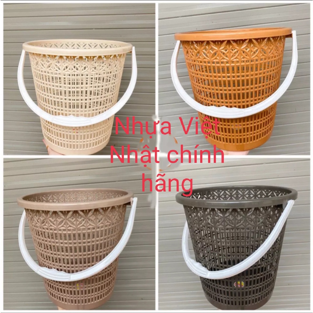 Sọt rác nhựa có quai xách hoa đồng tiền Việt Nhật. Kích thước: 26.5 x 17.5 x 27.5cm. Hàng Việt Nam chất lượng cao