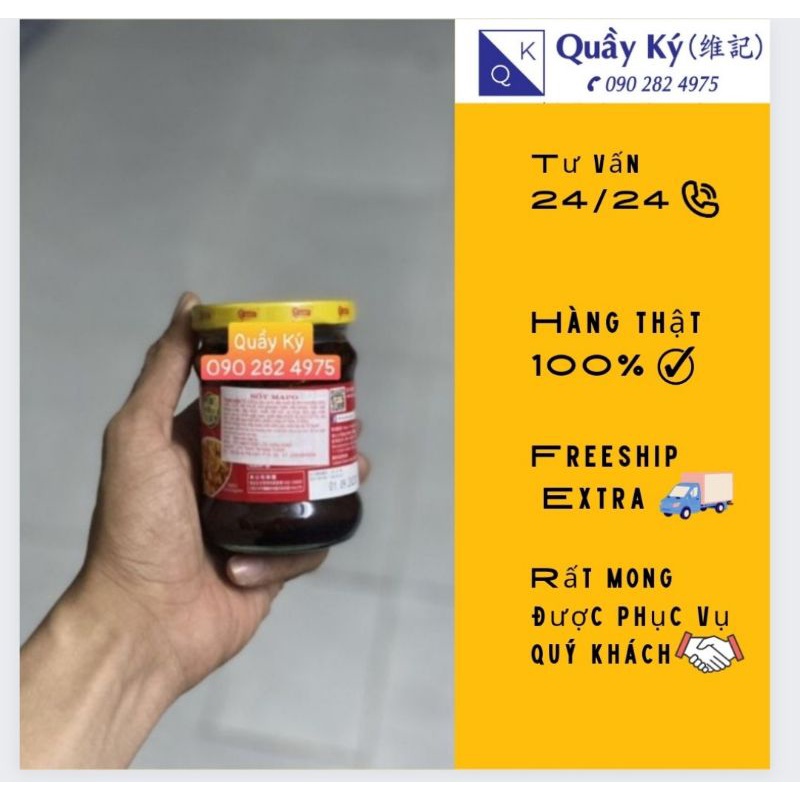 Sốt đậu phụ Amoy Mapo xuất xứ : Hongkong hạn sử dụng 12 tháng kể từ ngày sản xuất Thông tin chi tiết về sản phẩm: Được làm từ đậu nành muối lên men Amoy, tỏi và ớt với hương vị đích thực của phong cách Tứ Xuyên Sử dụng dầu hạt cải, tốt cho sức khỏe và ngon Không thêm chất bảo quản Không thêm chất điều vị Xuất xứ: Hồng Kông Công dụng sản phẩm: Gà cay trong Đậu phụ Ma-Po Nước sốt Thành phần: Đùi gà bỏ da 225g, cần tây 140g (cắt miếng), Sốt đậu phụ Amoy Mapo 1 muỗng canh Nước sốt: Sốt đậu hũ Amoy Mapo 1 muỗng canh, tinh bột ngô 1 muỗng cà phê Cách làm: 1. Đùi gà cắt miếng. Trộn nó với nước xốt trong 15 phút. Áp chảo cho đến khi hoàn thành. món ăn lên. 2. Làm nóng chảo với 1 muỗng canh dầu. Xào sơ qua và áp chảo với 1 muỗng canh nước sốt đậu phụ Ma-Po. Thêm thịt gà và 1 muỗng canh nước. Xào cho đến khi nước sốt giảm bớt xuất xứ : Hongkong hạn sử dụng 12 tháng kể từ ngày sản xuất. ----------------------------------------------- Cửa hàng Chợ Hoà Bình 🏩 Địa chỉ: cổng chính chợ Hoà Bình đường Bùi Hữu Nghĩa Phường 5, Quận 5, TP HCM 👉 Chuyên cung cấp số lượng lớn cho nhà hàng, quán ăn 👉 Chuyên cung cấp các mặt hàng trung hoa 👉Ship các tỉnh qua chành xe nhà xe khi mua với số lượng lớn 📞 0902824975 Quầy ký (có Zalo hỗ trợ 24/24) ☎️ Liên hệ báo giá sỉ 0902824975 ( anh Duy )