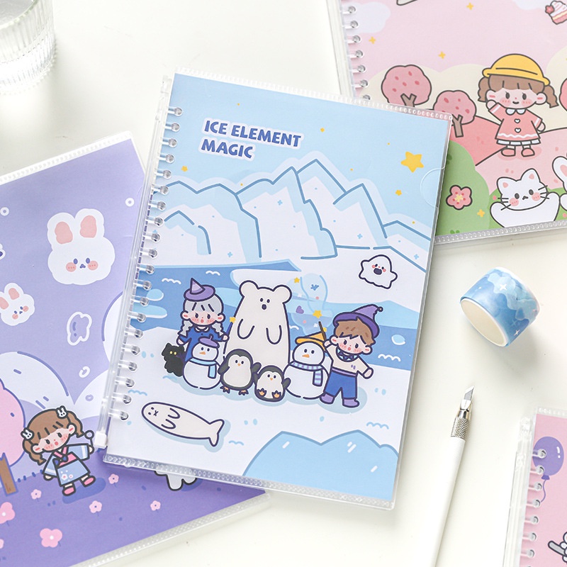 Sổ tay ghi chép, sổ gáy lò xo A5 kẻ ngang 60 trang , bìa họa tiết hoạt hình, nhiều hình cute