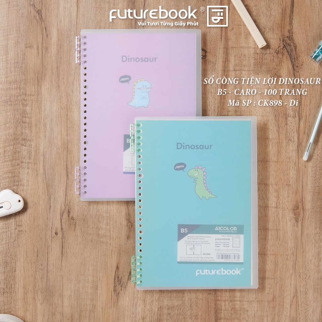 Sổ Còng Tiện Lợi Dinosaur B5- Dòng kẻ Caro- 100 Trang. MSP: CK898-Di. VPP FUTUREBOOK. Giao ngẫu nhiên.