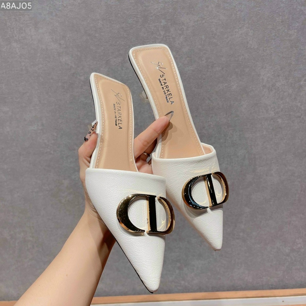 Dép sục nữ mũi nhọn thời trang phối khóa đính đá gót đũa 5 phân cực xinh mã e46