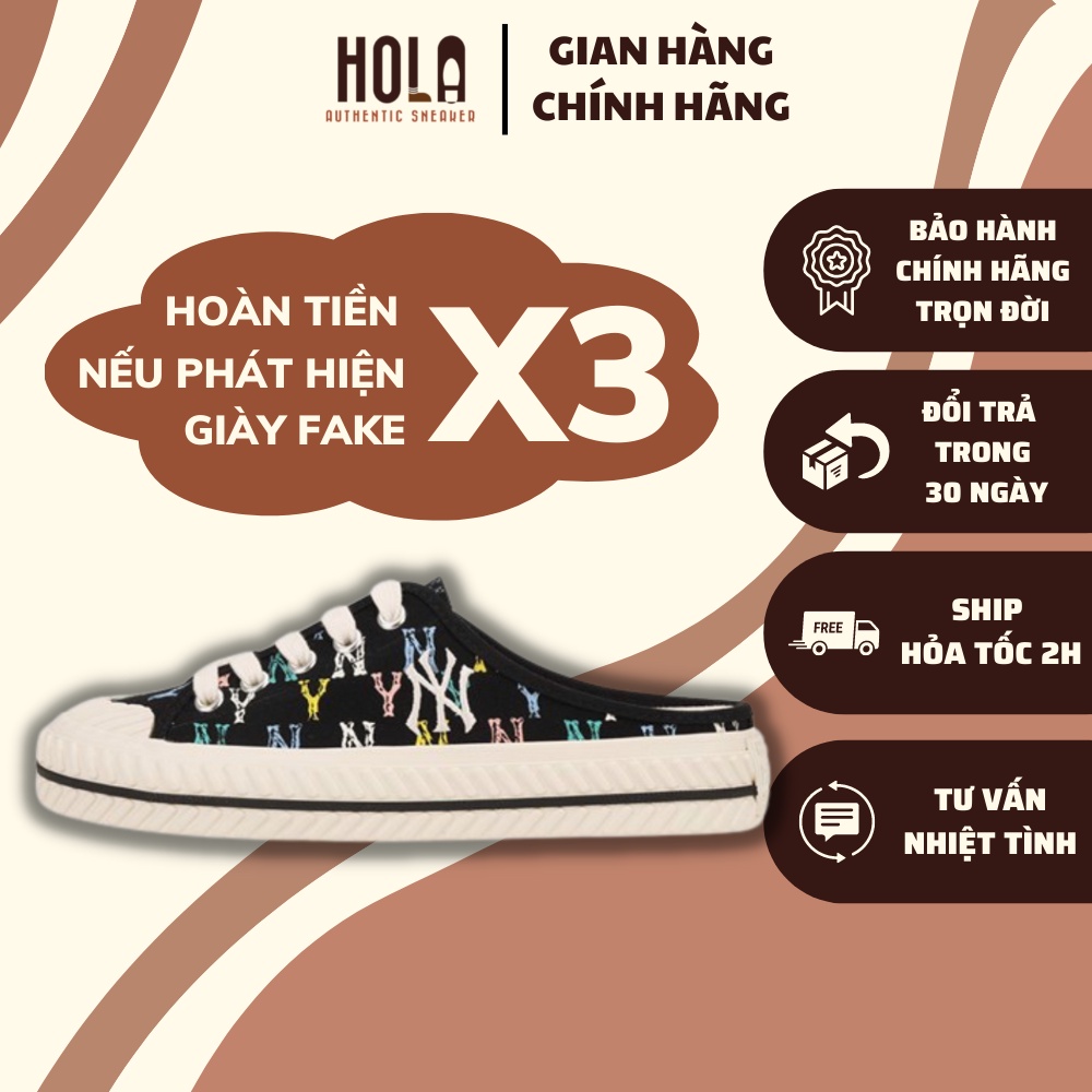 Giày MLB Mule Chính hãng, Giày sục đạp gót MLB Logo NY Playball Monogram thời trang nam nữ unisex