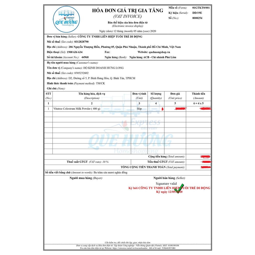 Quà Tặng cho Cha Mẹ không thể thiếu. Bổ sung sữa non cho trẻ thường xuyên giúp cơ thể bé có một đề kháng mạnh, giúp bé phát triển chiều cao tốt... Công dụng của Sữa bò non VITATREE Colostrum Milk Powder: Cung cấp Protein, các loại vitamin và khoáng chất cho cơ thể, tăng năng lượng, giúp bé phát triển khỏe mạnh, chống suy dinh dưỡng, thấp còi. Bồi bổ cơ thể và phục hồi sức khỏe cho những người thường xuyên suy nhược, mệt mỏi, căng thẳng, tăng cường sức khỏe cho người già. Sữa non VITATREE 400g cung cấp hàm lượng kháng thể LGG cao, giúp tăng cường hệ miễn dịch cho cơ thể, bảo vệ cơ thể trước các tác động từ môi tường bên ngoài, ngăn ngừa các bệnh vặt. Kích thích hệ tiêu hóa hoạt động tốt hơn, tăng cường khả năng hấp thu dưỡng chất, giúp cho bé tăng trưởng tốt về thể lực và tăng cân nhanh chóng. Thúc đẩy mô, xương, sụn, cơ, răng phát triển, duy trì sự tăng trưởng tốt cho bé trong giai đoạn tăng trưởng những năm đầu đời. Sữa non colostrum milk powder của Úc giúp duy trì tuổi thanh xuân, chống lão hóa, giúp bổ sung nội tiết tố cho làn da săn chắc, hồng hào, mịn màng, loại bỏ các gốc tự do gây nám, tàn nhang, đồng thời hỗ trợ rối loạn tiền mãn kinh ở phụ nữ, giảm nguy cơ mắc bệnh tim mạch, loãng xương, ung thư. CÁCH DÙNG: Trẻ từ 1 >6 tuổi 1 đến 2 muỗng/ lần Từ 6>16 tuổi 2 đến 3 muỗng/ lần Người lớn 3 > 5 muỗng/ lần SẢN PHẨM KHÔNG PHẢI THUỐC KHÔNG THỂ THAY THẾ THUỐC CHỮA BỆNH..