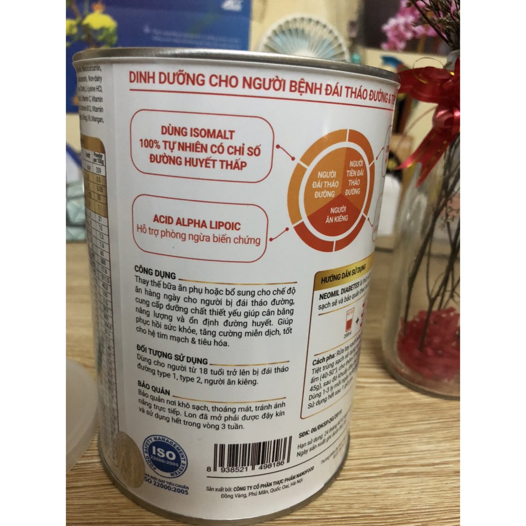 Sữa bột Neomil Diabetes 350g chuyên biệt cho người tiểu đường, tiền tiểu đường, ăn kiêng
