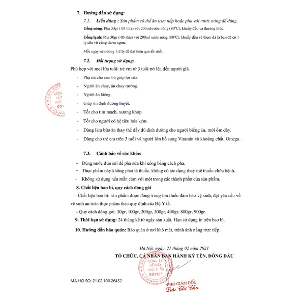 SỮA HẠT THỰC DƯỠNG SOYNA gồm các thành phần: Yến mạch, hạt chia, hạt óc chó, hạt macca, hạt sachi, đậu hà lan, gạo lứt nảy mầm, hạt lạc, hạt bí, tinh dầu cọ đường cỏ ngọt. Đặc biệt không chứa đậu nành. ------------------------------ CÔNG DỤNG - Đặc biệt tốt cho phụ nữ mang thai và cho con bú - Người tập thể thao, gym, yoga - Bổ sung dinh dưỡng, protein và các khoáng chất axit amin - Giàu chất xơ tăng cường hệ tiêu hoá. -Cung cấp Vitamin và Om.ega 3,6. - Chống oxy hoá, thanh lọc cơ thể - Tăng cường sức đề kháng giúp cơ thể khỏe mạnh, tinh thần minh mẫn. - Có thể thay thế hoàn toàn 1 bữa ăn ------------------------------ ƯU ĐIỂM VƯỢT TRỘI - Các hạt được chọn lựa kĩ càng, tách vỏ, ép lạnh, loại bỏ các dầu và các chất dư thừa, sau đó cắt kích thước hạt nhỏ NANO, nên hòa tan hoàn toàn trong nước, không gây nghẹn cổ như ngũ cốc thường 😋. - SỮA HẠT THỰC DƯỠNG SOYNA, đúng như tên gọi, thể hiện sự thuần khiết, tự nhiên, lành tính với nguồn gốc từ các hạt nguyên chất Nhờ công nghệ đóng hộp hiện đại nên Sữa hạt thực dưỡng SoyNa không hề có chất bảo quản. - SỮA HẠT CHO BÀ BẦU rất thơm ngon dễ uống, được làm trên dây chuyền hiện đại nhập khẩu từ Hàn Quốc. bổ sung nhiều vi chất quan trọng cho mẹ bầu - SỮA HẠT THỰC DƯỠNG SOYNA cũng dành cho người tập yoga, tập gym, người ăn kiêng theo đuổi cuộc sống không tin bột. Sữa hạt soyna cũng được lựa chọn là sữa hạt cho người ăn chay bổ sung đủ chất dinh dưỡng protein và đạm cần thiết cho người trường chay * Sản phẩm không phải là thuốc và không có chức năng thay thế thuốc chữa bệnh ------------------------------ CÁCH PHA Pha 3 thìa với 200ml nước ấm (80 độ), khuấy đều và thưởng thức (có thể cho thêm đá nếu muốn uống lạnh) ------------------------------ CAM KẾT - Tất cả các công đoạn sản xuất đều được tuân theo một quy trình khép kín rất chặt chẽ. - Hạn sản xuất mới nhất, date mới nhất - Hàng khuyến mãi đươc cập nhật liên tục - Được cấp chứng nhận FDA tiêu chuẩn chất lượng của Mỹ. Đạt chứng nhận ISO 22000 về VSATTP #suahat #suathucduong #suachay #suachaysoyna #eatclean #suahatthucduong #suachobabau #suahatbabau #babau