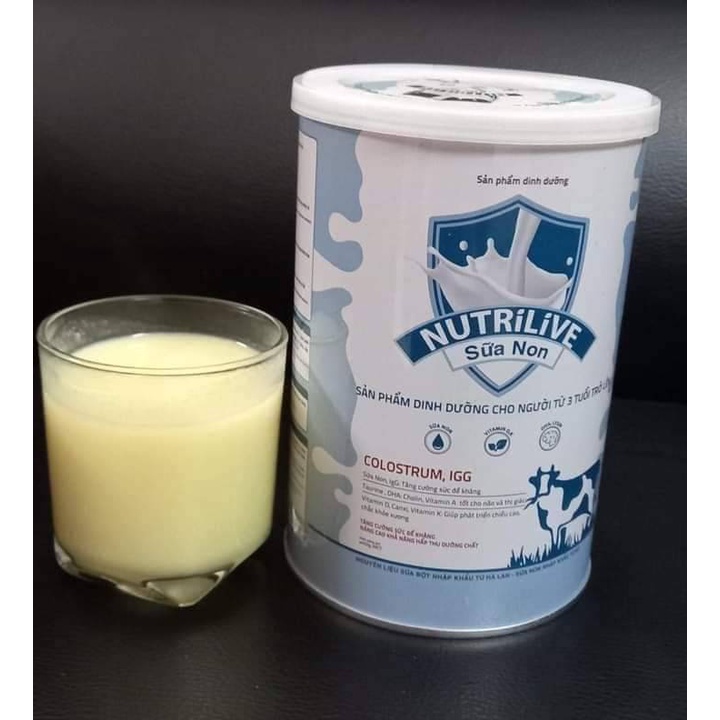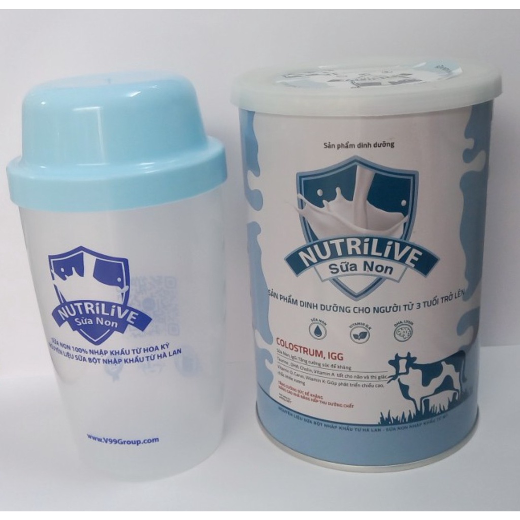 Sữa non NUTRILIVE dùng cho mọi lứa tuổi,nâng cao hệ miễn dịch, bồi bổ cơ thể, lợi khuẩn và canxi cao. lon 450g tặng bình