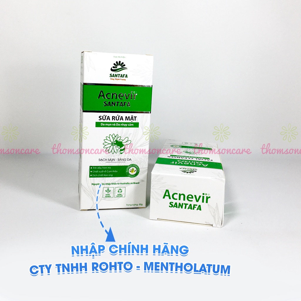 Combo Sữa Rửa Mặt Và Kem Hỗ Trợ Ngừa Mụn Cám, Mụn Đầu Đen Acnevir Santafa Tuýp 100g và 10g