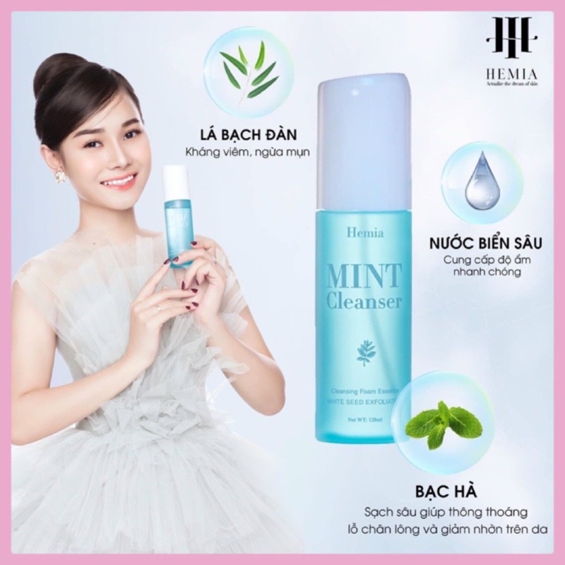 [Chính Hãng] Sữa Rửa Mặt Hemia Hàn Quốc, Tinh Thể Mint Cleanser - Dưỡng Trắng, Làm Sạch Da, Cấp Ẩm, Kiềm Dầu, Ngừa Mụn, Chống Lão Hóa Da Mô tả sản phẩm: Sản phẩm ở dạng nước tạo bọt mỏng nhẹ nhàng, giúp sạch sâu da gấp 3 lần so với sữa rửa mặt thông thường. Với độ PH