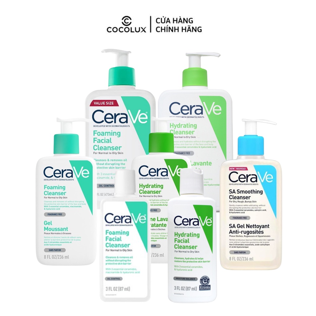 Sữa rửa mặt Cerave Foaming Cleanser, CeraVe Hydrating Cleanser, SA Cleanser 236ML Cho Mọi Loại Da