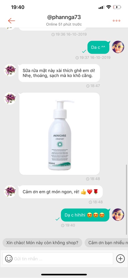 Cách pha bình tạo bọt: https://youtu.be/Igi_0BjL8Us Srm cho da dầu mụn Aknicare Cleanser 200ml có xuất xứ từ Ý, được đặc chế cho làn da mụn mang lại hiệu quả làm sạch da dịu nhẹ. Đặc biệt, srm rửa mặt ngừa mụn Aknicare Cleanser không chỉ tiêu diệt được mụn trứng cá trên mặt mà còn cho các vùng da bị mụn khác trên cơ thể như cổ, ngực và lưng. • Gel rửa mặt sẽ làm sạch da, thông thoáng, se khít lỗ chân lông. • Giảm lượng dầu nhờn rất hiệu quả. • Hỗ trợ giảm sưng,và giúp loại bỏ cồi mụn và giúp da nhanh chóng mịn màng hơn. • Sản phẩm được tin dùng bởi các chuyên gia da liễu. THÀNH PHẦN • Triethul citrate: được thủy phân bởi vi khuẩn sinh mụn trứng cá P thành esters của acid citric, làm giảm pH (ức chế 5-α-reductase giúp giảm tiết bã nhờn), ức chế thủy phân triglycerides, ngăn ngừa vết thâm, tàn nhang sau mụn. • Pyruvic acid: Hỗ trợ trao đổi chất tế bào, giúp làn da mau phục hồi. • Triclosan: Giúp làm sạch, loại trừ & ức chế sự phát triển của vi khuẩn, giảm nguy cơ nhiễm trùng gây sưng tấy gây mụn. Giúp vệ sinh sạch sẽ các vùng da có mụn, ngăn ngừa mụn phát triển. Srm đc bác sĩ khuyên dùng nhé cả nhà ơi. Hãng này chỉ có vài sp tập trung ngừa mụn thôi. Mình dùng thấy rất thích, dạng gel tạo bọt, mùi thơm nhẹ, dùng xong không bị khô da, da rất êm mượt nhé.