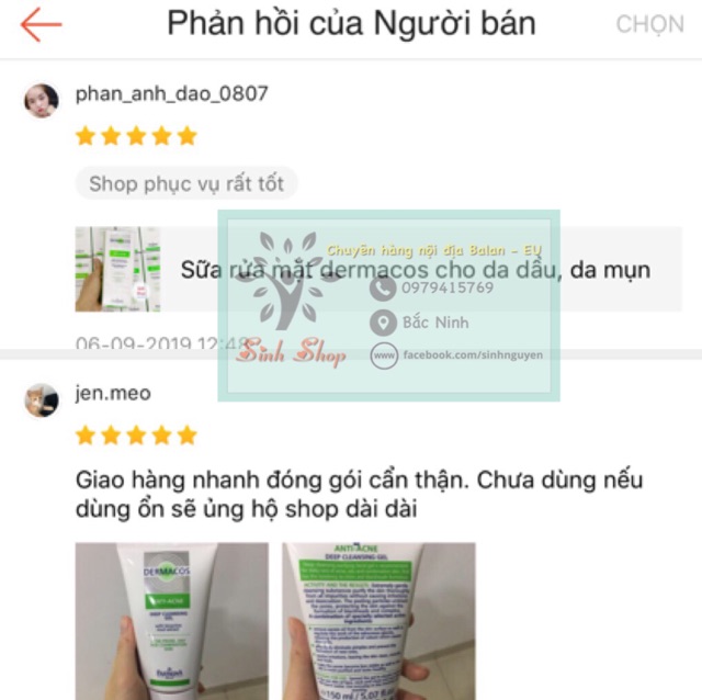 Có những khách yêu chẳng hề thân quen, nhưng lại giúp và ủng hộ nhà bin rất nhiều, có b dùng sữa rửa mặt dermacos nhà bin ưng quá giới thiệu cho các chị công ty mua cùng luôn, dùng mà ai cũng mê tít chứ 😂😂. Đọc được những #feeddback_dermacos đó e lại có thêm động lực để phục vụ các tình yêu hơn ấy😍😍. #feeddback_sữa_rửa_mặt_dermacos_cho_da_dầu_mụn_balan ☘Sửa Rửa Mặt Giảm Nhờn Da DERMACOS Dermacos Anti Acne Deep Cleansing Gel Farmona 150ml ☘Công dụng: 🍓Ngăn ngừa sự hình thành của mụn đầu đen, mụn trứng cá mụn ẩn. 🍓Nhẹ nhàng làm sạch nhưng hiệu quả loại bỏ bã nhờn dư thừa kể cả trang điểm. 🍓Không gây hai cho da. giúp se khít lỗ chân lông. ☘Khuyên dùng: Sữa rửa mặt Dermacos cho da dầu, da tăng tiết bã nhờn. Dành cho cả nam/nữ. #sữarửamặtdermacos #farmona #dermacos #farmonadermacos #sữarửamặt #dadaumun #sữa_rửa_mặt_dermacos #dadầu #dabóngnhờn #sekhítlỗchânlông #lỗchânlôngto 0979415769