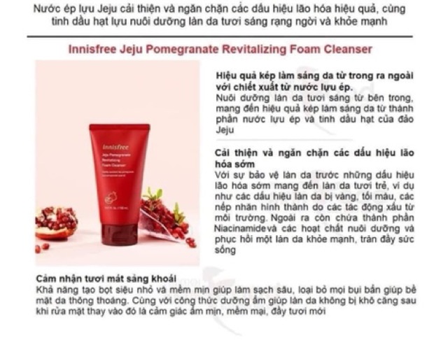 Dành cho ai muốn tìm 1 loại srm làm sạch da mà còn: CHỐNG LÃO HOÁ - LÀM SÁNG DA 💧💧 SỮA RỬA MẶT #INNISFREE LỰU ĐỎ ❤️ ⚡️ Mới ra mắt của hãng vào dịp cuối năm 2019 ạ. 👉🏻 Em nó hoàn toàn từ nước ép lựu nguyên chất và tinh dầu hạt lựu. Rửa mặt xong da sạch mà còn dưỡng