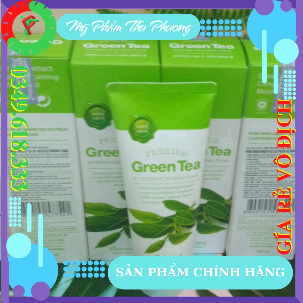Sữa Rửa Mặt Trà Xanh Cho Dầu Ngăn Ngừa Mụn Làm Trắng Sạch PURE MIND Green Tea So Fresh Cleansing Foam Mỹ Phẩm Hàn Quốc