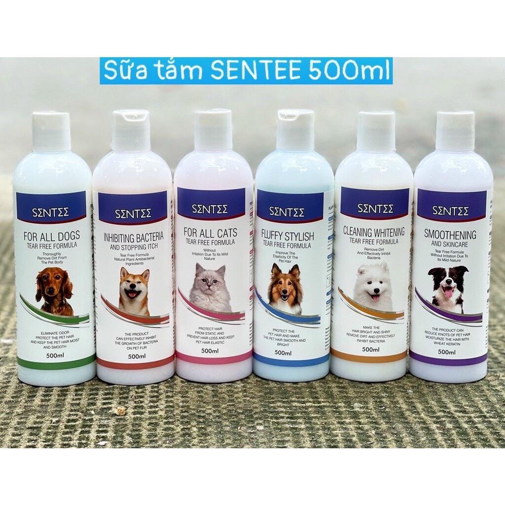 Sữa tắm cho chó mèo SENTEE chai 500mlƯu điểm:- ngăn ngừa sự mất nước,nuôi dưỡng giữ ẩm cho da, lông của thú cưng- khử mùi hôi của chó mèo, lưu hương thơm cực lâu- hỗ trợ làm mượt, chăm sóc lôn...