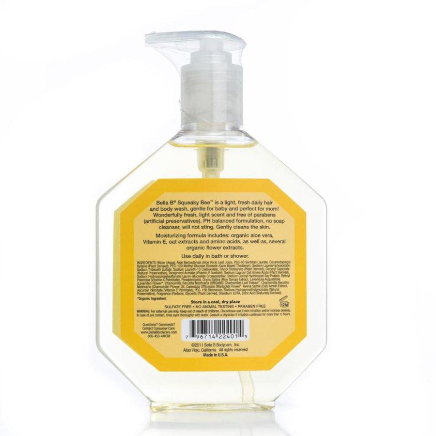 Bella B Natural Bodycare được thành lập vào năm 1999 tại Aliso Viejo, California, Mỹ với sứ mệnh mang đến những sản phẩm cao cấp từ thiên nhiên với mức giá vừa phải cho những bà mẹ trước, trong và sau thời kỳ mang thai và em bé từ sơ sinh đến dưới 5 tuổi. Sản phẩm của Bella B là sản phẩm thiên nhiên, được làm bằng các thành phần hữu cơ. Tất cả các sản phẩm đều không chứa paraben (chất bảo quản nhân tạo), phụ phẩm từ động vật, petrolatum (thành phần có nguồn gốc dầu mỏ) và các hợp chất hóa học. Các sản phẩm của Bella B được sản xuất tại Mỹ và điều hành bởi đội ngũ nhân viên tận tụy, luôn nổ lực hết mình để đem đến cho khách hàng những sản phẩm làm đẹp và chăm sóc da tốt nhất từ thiên nhiên. Bella B cam kết mang lại những sản phẩm có thành phần hoàn toàn từ thiên nhiên, đáp ứng được tiêu chí “Những thành phần không nên có trong các sản phẩm chăm sóc da cho mẹ và em bé”, không chứa các hóa chất mạnh được dùng trong nhiều trong các sản phẩm trên thị trường và những hóa chất cấm sử dụng đối với bà mẹ và em bé. Thay vào đó, các sản phẩm của Bella B được bào chế từ những chiết xuất thực vật cao cấp và các loại tinh dầu được tuyển chọn kĩ lưỡng để mang lại hiệu quả tối ưu cho các sản phẩm. Dầu tắm gội cho bé - Bella B Squeaky Bee Bodywash and Shampoo với công thức lành tính gồm những thành phần hưu cơ như lô hội hữu cơ, vitamin E, chiết xuất bột yến mạch và một số chiết xuất hoa hữu cơ khác, không chứa chất tẩy rửa xà phòng, không chứa chất bảo quản, không chứa màu và hương nhân tạo giúp vệ sinh cho bé một cách tin cậy mà không gây kích ứng, không gây cay mắt, làm dịu làn da mỏng manh nhạy cảm của bé, cho bé cảm giác sảng khoái và mềm mại. Giá sản phẩm trên Tiki đã bao gồm thuế theo luật hiện hành. Bên cạnh đó, tuỳ vào loại sản phẩm, hình thức và địa chỉ giao hàng mà có thể phát sinh thêm chi phí khác như phí vận chuyển, phụ phí hàng cồng kềnh, thuế nhập khẩu (đối với đơn hàng giao từ nước ngoài có giá trị trên 1 triệu đồng).....